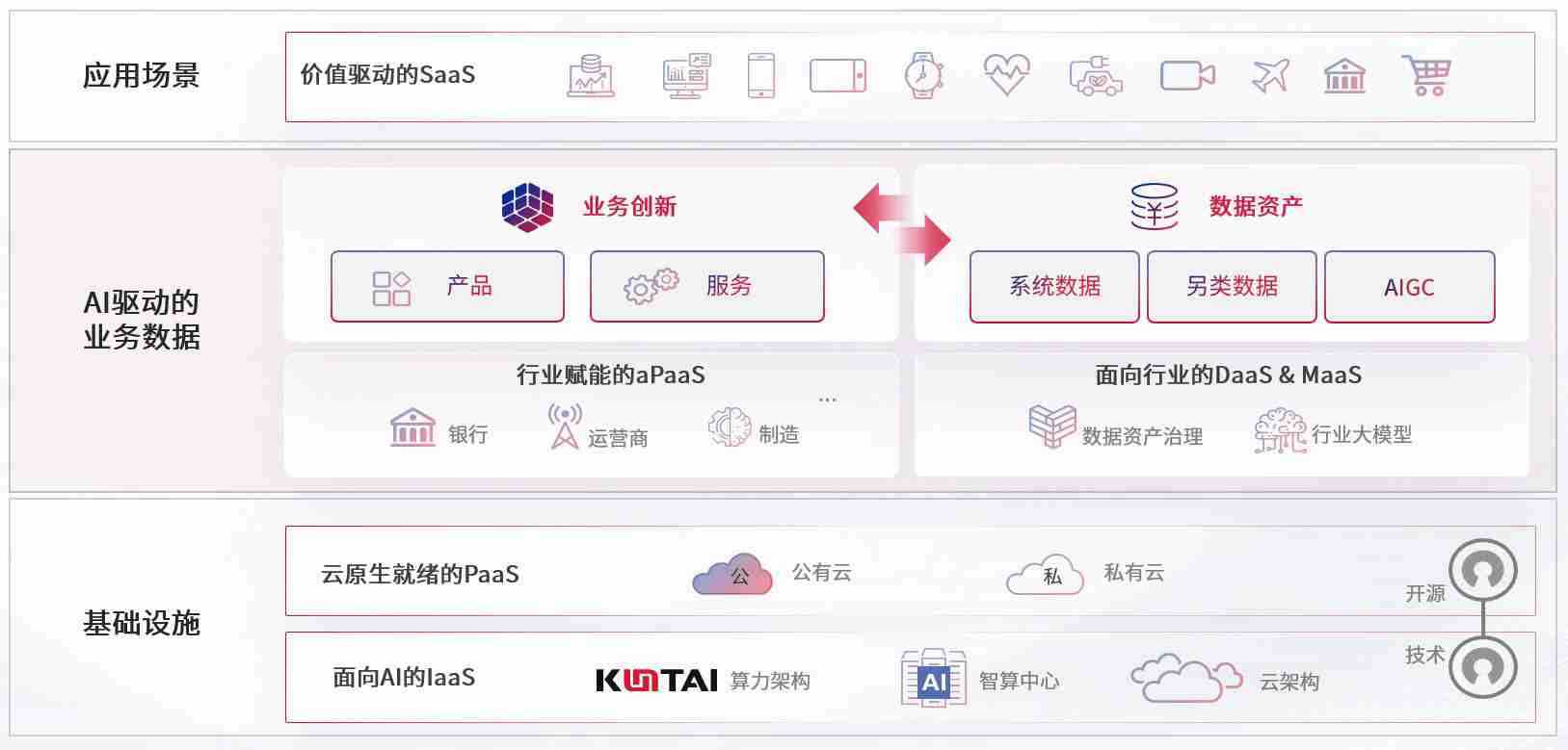 数字时代,,围绕企业数字化转型的关键要素,,,人生就是搏数码开创性的提出数云融合战略和技术体系框架,,,着力在云原生、、、、数字原生、、、、AI原生和信创产业上架构产品和服务能力,,,,为处在不同数字化转型阶段的快消零售、、、、汽车、、金融、、、、医疗、、、政企、、、教育、、、运营商等行业客户提供泛在的敏捷IT能力和融合的数据驱动能力,,,构建跨界融合创新的数字业务场景和新业务模式,,,,助力企业级客户建立面向未来的核心能力和竞争优势,,,全面推动社会的数字化、、、、智能化转型升级。。。
